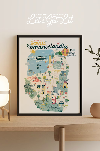 Make room on your shelves for this Romancelandia print (complete with scenic sights like the Mounts of Miscommunication and the Only One Bed Bungalow).