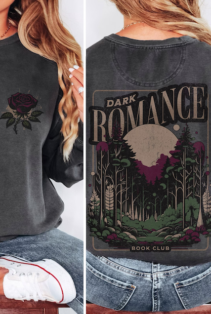 We love how moody the colors are on this dark romance book club shirt.