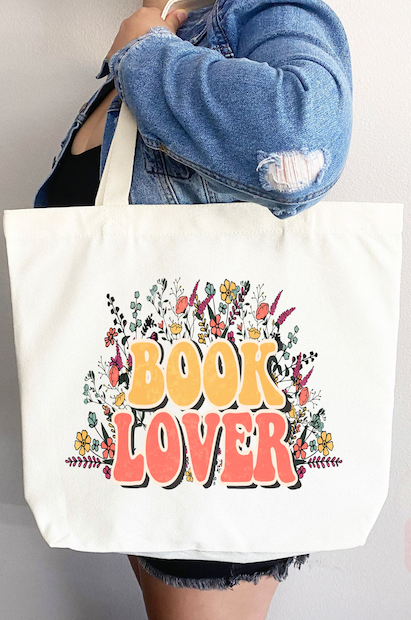 Show off your love of books with this floral tote.