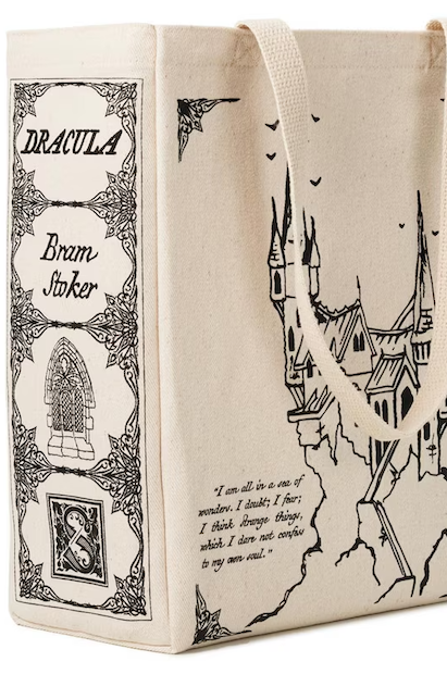 With sides that look like Dracula’s book spine, this could be the coolest bookish tote in your collection.