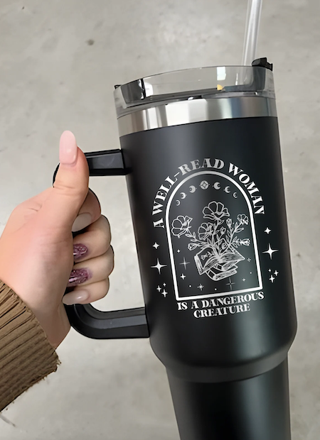 Whether they’re curled up with their e-reader or on the run listening to an audiobook, readers need to stay hydrated and this tumbler will help them do just that.